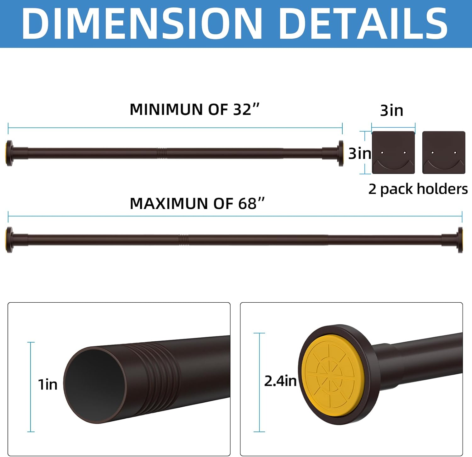 Matte Bronze Shower Curtain Rod,1 Inch Diameter Stainless Steel Adjustable Spring Tension Rods 32 to 68″,with Holders,Anti-Slip,Curtain Rods No Drilling(1 Pack)